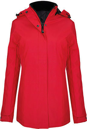 Parka doublure matelassée. Coupe femme. Capuche dans le col. Fermeture centrale à glissière sous patte auto-agrippante et pressions invisibles. 2 poches extérieures zippées, 2 poches intérieures, 1 poche téléphone.
