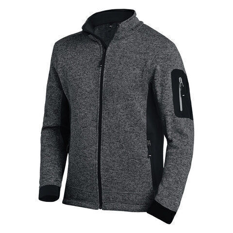 Veste polaire tricotée bi-matière. Col montant. Fermeture centrale par zip YKK® avec protège-menton. Inserts côtés en maille stretch noire. 2 grandes poches basses zippées. Poche zippée sur le bras. 2 poches intérieures. Poignets rapportés en maille stretch noire. Intérieur en molleton gratté. | Coupe ajustée.