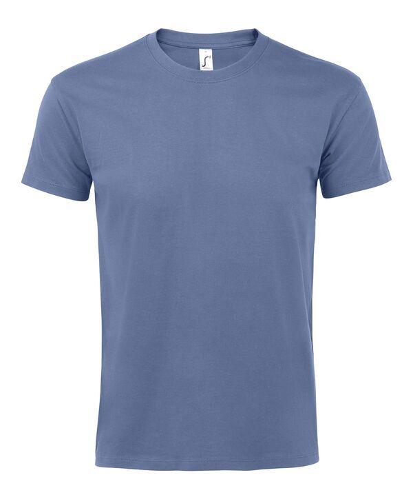 T-shirt homme coupe tubulaire coupé-cousu. Col rond en bord-côte. Bande de propreté ton sur ton à l'arrière. Manches courtes. Finition double aiguille bas de manches et bas de vêtement. | Coton semi-peigné Ringspun.