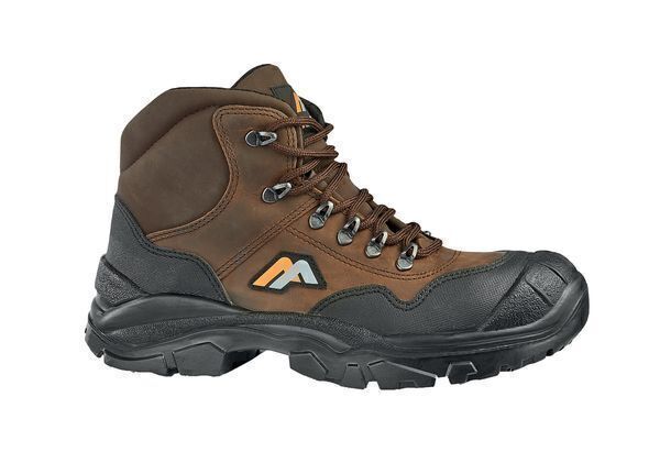 Chaussures de sécurité mixte. Tige cuir hydrofuge finition Pull-up, renforts avant et arrière anti-abrasion. Surembout Matrix en PU. Doublure textile respirant. Œillets acier inox ultra résistants. Embout polymère LITE-PLUS® 200 J. Intercalaire anti-perforation acier inoxydable. Semelle externe PU2D cramponnée.