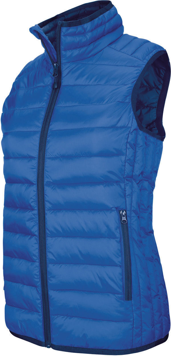Doudoune sans manches femme. Col montant. Fermeture centrale zippée avec sous-patte et protège-menton. 2 poches basses zippées. 2 poches intérieures. Intérieur contrasté. Emmanchures et bas de veste en biais élastiqué. | Fourni avec un sac de rangement.