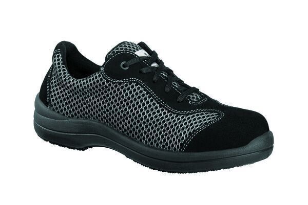 Chaussures de sécurité femme. Tige textile alvéolé respirante ultra légère et croûte de cuir. Doublure textile tridimensionnel micro-aérée. Embout HDFC Composite 200 J. Insert anti-perforation textile composite haute ténacité. Semelle externe Parabolight PU2D. | 0% Métal.