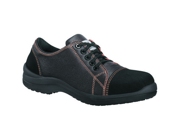 Chaussures de sécurité femme basses. Tige cuir souple pleine fleur grainé hydrofuge. Doublure textile tridimensionnel micro-aéré. Embout polycarbonate 200 J. Insert anti-perforation textile composite haute ténacité. Semelle externe Parabolight PU2D. | 0% Métal.