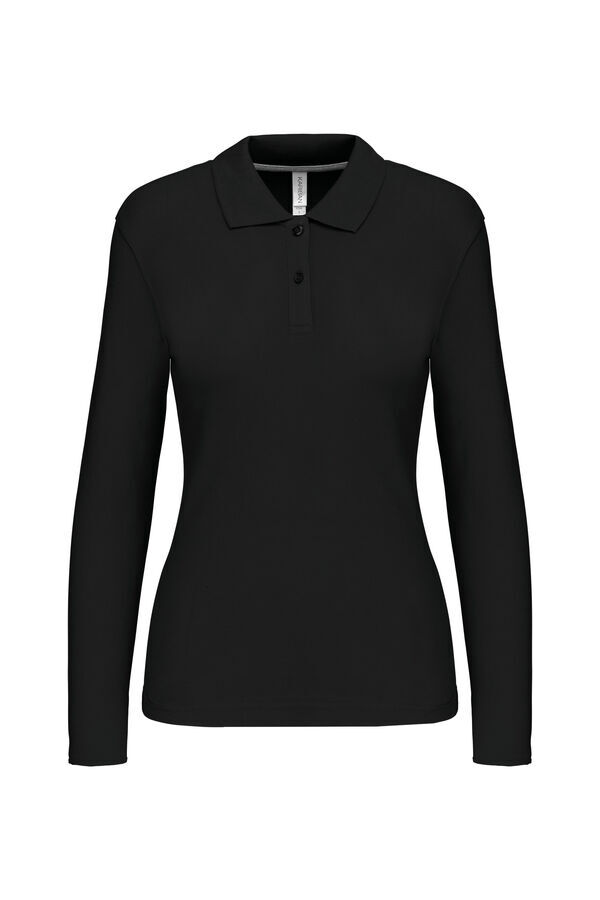 Polo col en bord-côte, patte de boutonnage 3 boutons. Bande de propreté contrastée à l’encolure. Fentes latérales. Manches longues, bas de manche finition en bord-côte. Finition double aiguille bas de vêtement. | Maille piquée.