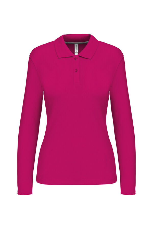 Polo col en bord-côte, patte de boutonnage 3 boutons. Bande de propreté contrastée à l’encolure. Fentes latérales. Manches longues, bas de manche finition en bord-côte. Finition double aiguille bas de vêtement. | Maille piquée.