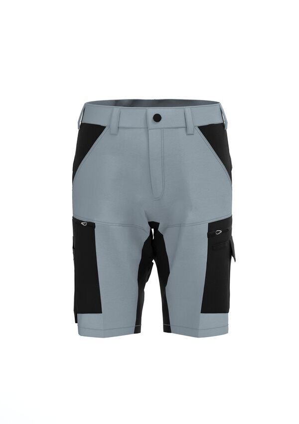 Bermuda léger stretch. Ceinture élastiquée aux côtés fermée par bouton et zip. 2 poches italiennes. 2 poches cuisses zippées. Poche mètre avec 3 compartiments. Poche sous rabat fermé par auto-agrippant. Porte-outils. Poche arrière sous rabat fermé par auto-agrippant. Réhausse dos.