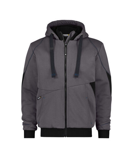 Sweat-shirt zippé. Capuche à double couche réglable avec cordon. Col, poignets et taille en tricot avec coutures renforcées. Coudes renforcés en Cordura®. Poche de sécurité cachée avec fermeture à glissière. 2 poches basses. Surpiqûres contrastées.