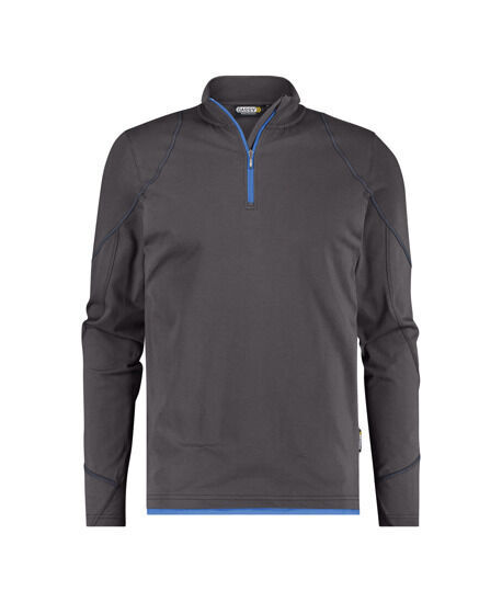 T-shirt manches longues. Col montant 1/4 zip finition bord-côte. Renforts aux épaules. Fentes latérales. Surpiqûres contrastées.