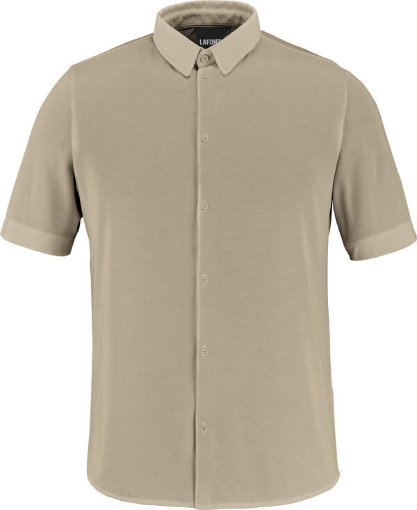 Chemise homme en maille. Col chemise. Fermeture 7 boutons ton sur ton. Empiècement dos. Manches courtes.
