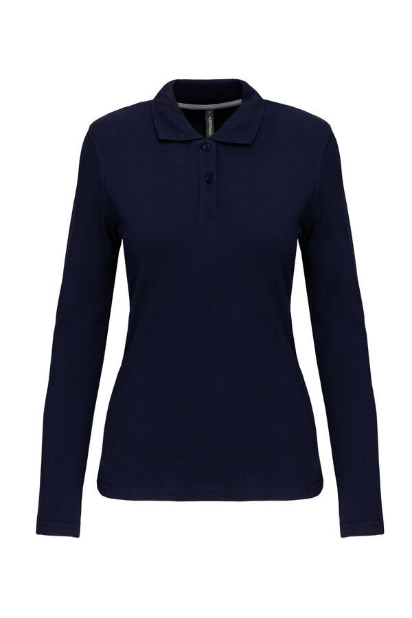 Polo col en bord-côte, patte de boutonnage 3 boutons. Bande de propreté contrastée à l’encolure. Fentes latérales. Manches longues, bas de manche finition en bord-côte. Finition double aiguille bas de vêtement. | Maille piquée.