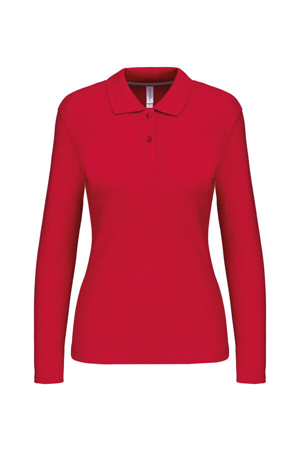 Polo col en bord-côte, patte de boutonnage 3 boutons. Bande de propreté contrastée à l’encolure. Fentes latérales. Manches longues, bas de manche finition en bord-côte. Finition double aiguille bas de vêtement. | Maille piquée.