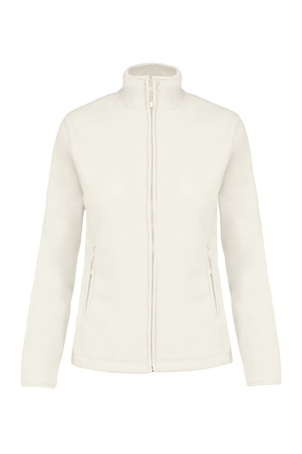 Veste micropolaire femme. Col montant. Fermeture centrale zippée. 2 poches côtés zippées. Biais de finition au col, poignets et zip. | Traitement anti-boulochage. Coupe cintrée.