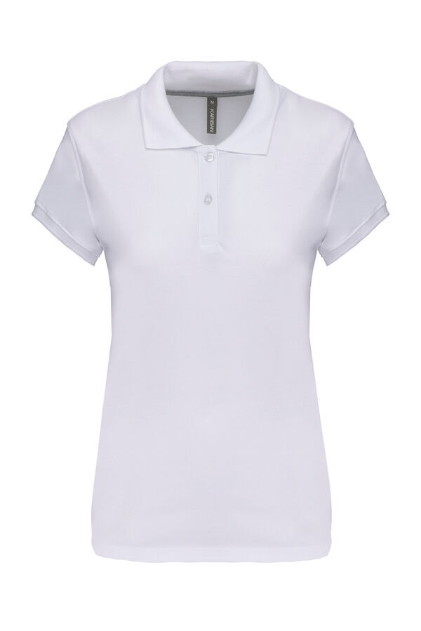 Polo femme col en bord-côte, patte de boutonnage 3 boutons. Bande de propreté contrastée à l’encolure. Fentes latérales. Manches courtes, bas de manche finition en bord-côte. Finition double aiguille bas de vêtement. | Maille piquée.