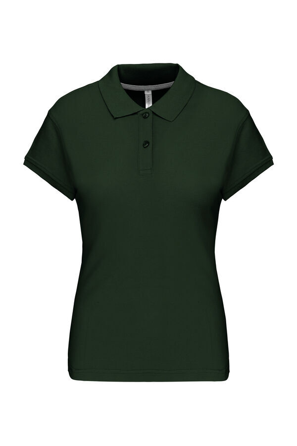 Polo femme col en bord-côte, patte de boutonnage 3 boutons. Bande de propreté contrastée à l’encolure. Fentes latérales. Manches courtes, bas de manche finition en bord-côte. Finition double aiguille bas de vêtement. | Maille piquée.