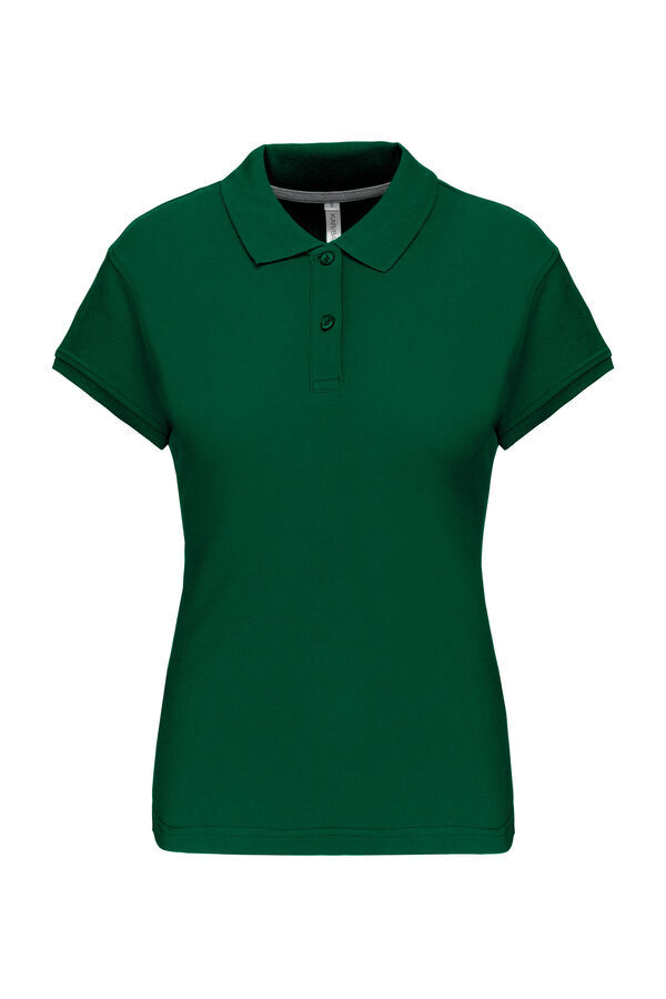 Polo femme col en bord-côte, patte de boutonnage 3 boutons. Bande de propreté contrastée à l’encolure. Fentes latérales. Manches courtes, bas de manche finition en bord-côte. Finition double aiguille bas de vêtement. | Maille piquée.