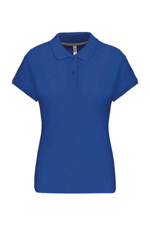 Polo femme col en bord-côte, patte de boutonnage 3 boutons. Bande de propreté contrastée à l’encolure. Fentes latérales. Manches courtes, bas de manche finition en bord-côte. Finition double aiguille bas de vêtement. | Maille piquée.