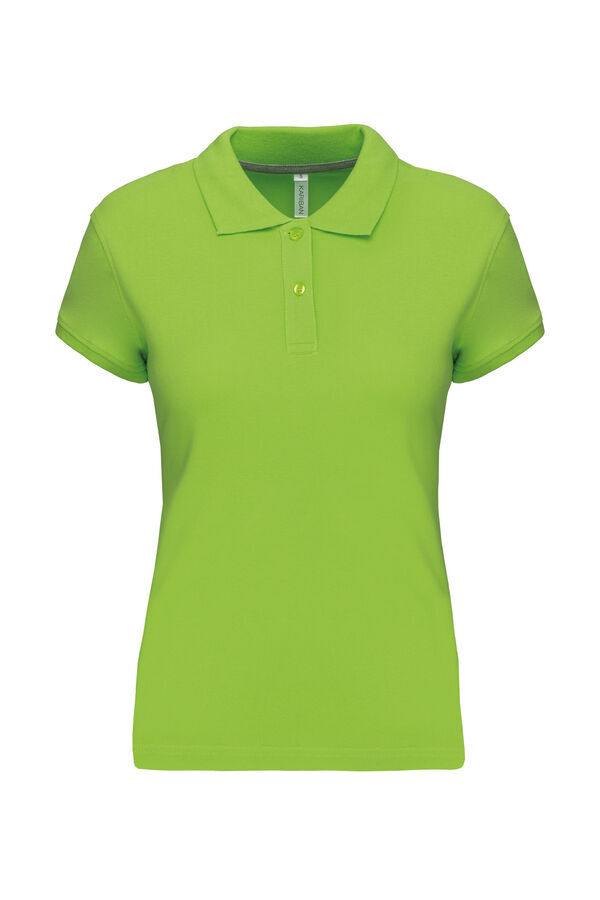 Polo femme col en bord-côte, patte de boutonnage 3 boutons. Bande de propreté contrastée à l’encolure. Fentes latérales. Manches courtes, bas de manche finition en bord-côte. Finition double aiguille bas de vêtement. | Maille piquée.