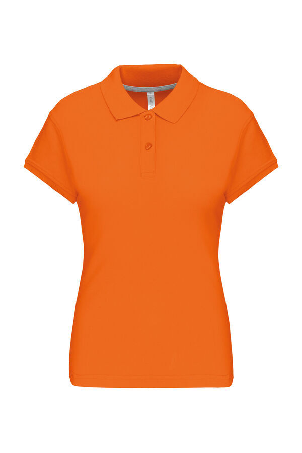 Polo femme col en bord-côte, patte de boutonnage 3 boutons. Bande de propreté contrastée à l’encolure. Fentes latérales. Manches courtes, bas de manche finition en bord-côte. Finition double aiguille bas de vêtement. | Maille piquée.