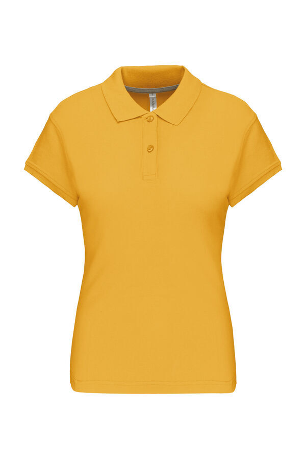Polo femme col en bord-côte, patte de boutonnage 3 boutons. Bande de propreté contrastée à l’encolure. Fentes latérales. Manches courtes, bas de manche finition en bord-côte. Finition double aiguille bas de vêtement. | Maille piquée.