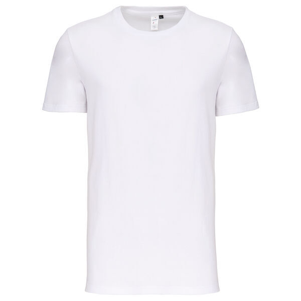 T-shirt homme au label "Origine France Garantie". Encolure ronde en bord-côte. Bande de propreté ton sur ton. Vignette clip Bleu/Blanc/Rouge sur le bas de manche gauche. Finition double aiguille bas de manches et bas de vêtement. | Coton peigné. Coupé cousu.