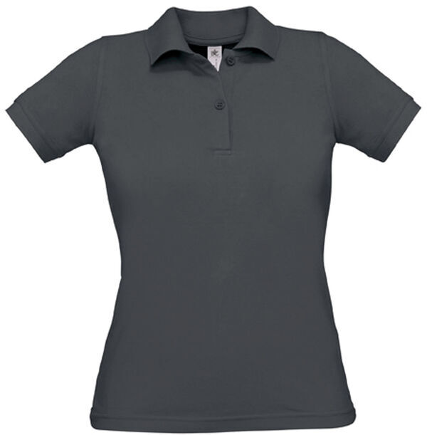 Polo femme. Plaquette 2 boutons ton sur ton. Col et bord de manche en côte 1x1. Coupe ajustée.