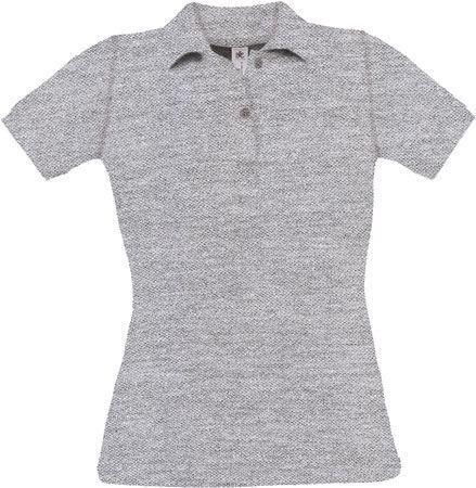 Polo femme. Plaquette 2 boutons ton sur ton. Col et bord de manche en côte 1x1. Coupe ajustée.