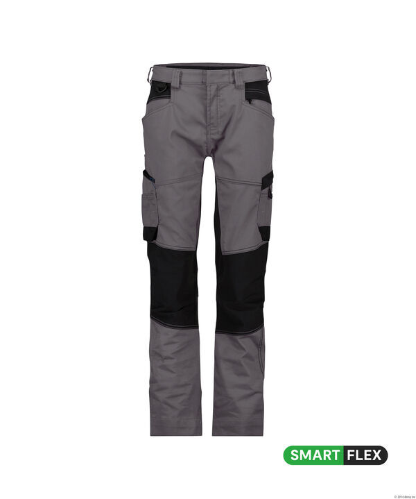 Pantalon bi-matière stretch femme. Fermeture à glissière, bouton jean caché, serrage élastique dos réglable. Taille abaissée. Insert stretch quadri-directionnel entrejambe, genoux, et enforme dos. Poches renforcées Cordura®. 2 poches italiennes. Poches arrières. Poche cuisse. Porte-crayon. Poche mètre. Poche cutter. Bouton pour porte couteau. Anneau en "D". Poche téléphone. Porte-badge détachable. Poche de sécurité zippée. Détails réfléchissants. | Coutures triples. Surpiqûres contrastées. Coupe ajustée. E.J. : 81 cm (+5 cm). 3 longueurs disponibles.