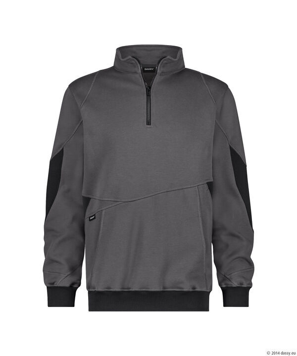 Sweat-shirt 1/2 zip avec protection du menton. Poche kangourou. Poche de sécurité cachée avec fermeture à glissière. Poignets et bas de vêtement en tricot. Coudes renforcés en Cordura®.