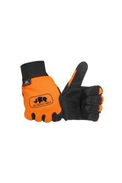 Gants cuir de chèvre sur la paume et dos textile. Rembourrage caoutchouc absorbant les impacts et les vibrations dans la paume de la main. Serrage poignet auto-aggripant.