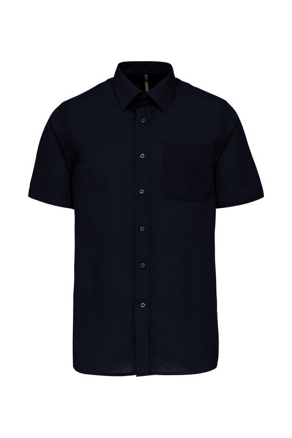 Chemise homme. Col avec pointe de col baleinée. Boutons ton sur ton. Poche poitrine côté gauche à angles arrondis. Empiècement dos double. Manches avec finition ourlet. Bouton de rappel. Bas arrondi. Finition coutures rabattues. Entretien facile.