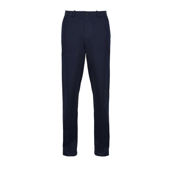 Pantalon chino homme taille en élastique. Fermeture zip et bouton. Passants ceinture. Ceinture élastiquée. 2 poches italiennes. 2 poches dos passepoilées avec boutons. E.J. : . 84 cm