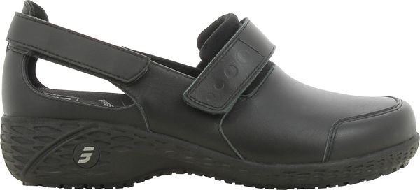 Chaussures non sécurité avec talon arrière fermé. Semelle intérieure amovible acceptant une semelle orthopédique. Dessus cuir et doublure en Coolmax®. Bride réglable par velcro. Semelle en EVA/caoutchouc, légère (250 g), flexible et antidérapante. Talon : 4 cm. Talon compensé : respect de la physiologie du dos et positionnement naturel du bassin.